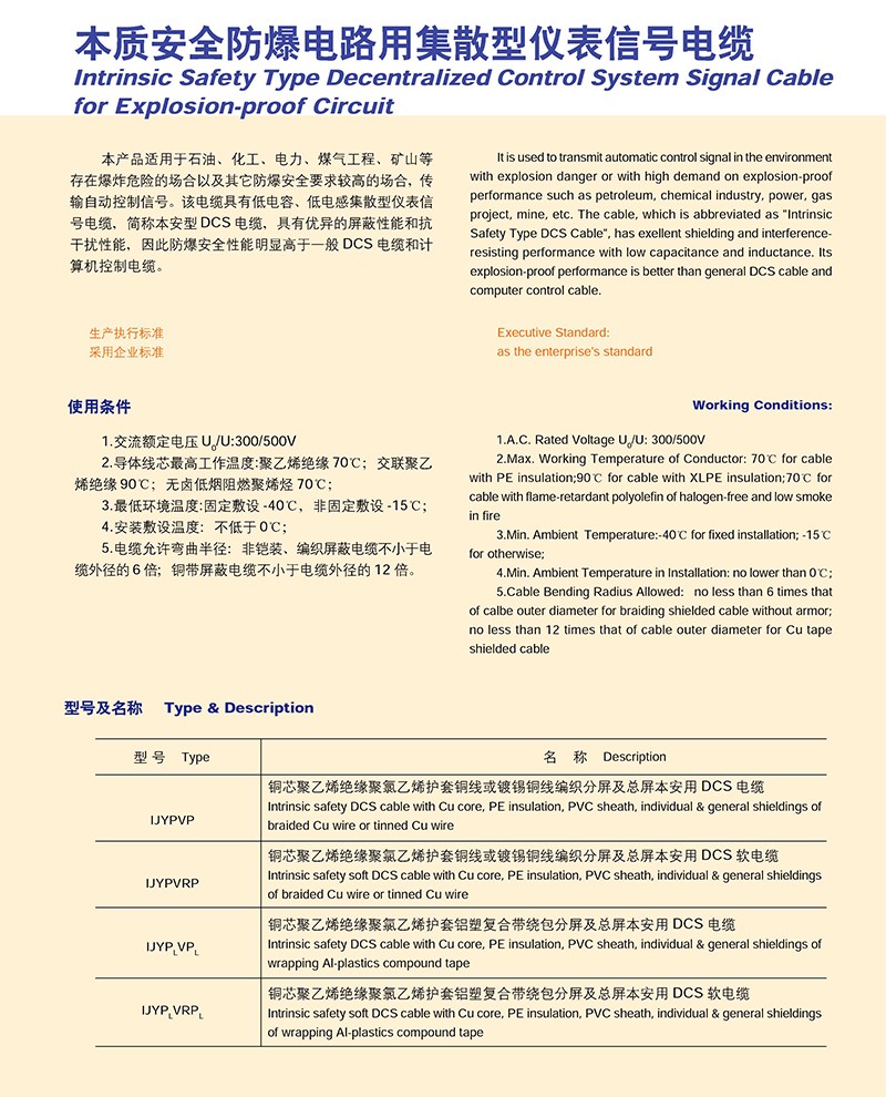 本質(zhì)放心防爆電路用集散型儀表信號電纜